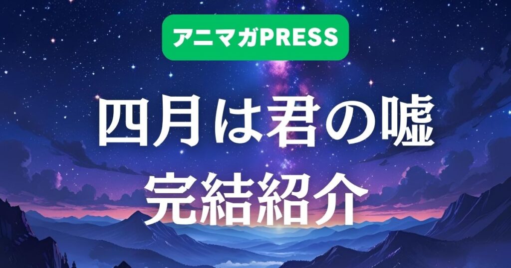 完結「四月は君の嘘」──ピアノとヴァイオリンが紡ぐ青春。完結から10年経ってもSNSで愛され続ける名作! 作品名:四月は君の嘘 作者:新川直司 出版社:講談社(『月刊少年マガジン』連載) ジャンル:青春・音楽・恋愛 既刊:全11巻(2011年~2015年連載、完結) アニメ:2014年10月〜2015年3... 2025.08.06完結
