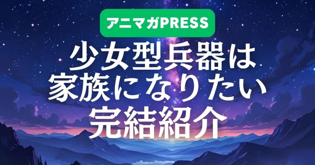 完結「少女型兵器は家族になりたい」 最強の兵器が、いちばん「家族」になりたい。 作品名:少女型兵器は家族になりたい 作者:ななてる 出版社/レーベル:KADOKAWA/角川コミックス・エース 連載:2021年7月9日〜2024年2月2日(Web掲載・Comic Newtype) 単行本... 2025.10.27完結