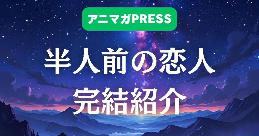作品名:半人前の恋人作者:川田大智出版社:集英社レーベル:ジャンプコミックスDIGITAL掲載:少年ジャンプ+(完結済み)巻数:全7巻(完結)完結巻:第7巻(2026年1月5日発売)ジャンル:青春/恋愛/学園 あらすじ ...