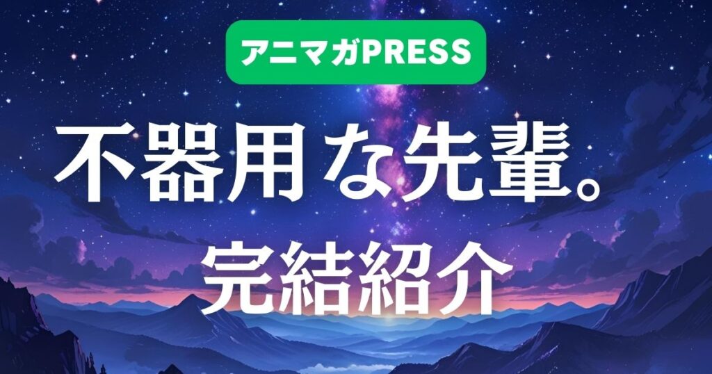作品名:不器用な先輩。作者:工藤マコト出版社:スクウェア・エニックス掲載誌:ヤングガンガン連載開始:2019年既刊:全11巻(完結)最終巻発売日:2026年2月25日メディア展開:TVアニメ化(2025年放送)ジャンル:オフィスラ...